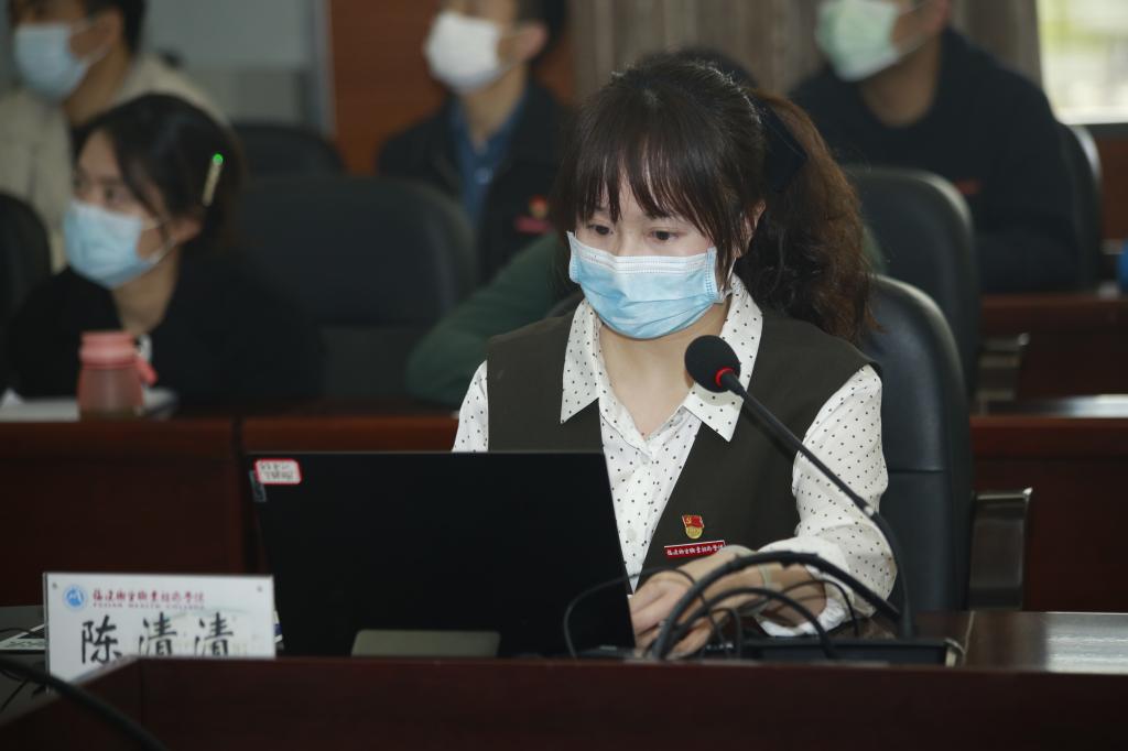 2月28日至今,整整30天,720個小時,我校的學(xué)生管理隊伍一直堅守在一線,輔導(dǎo)員們更是克服種種困難,和同學(xué)們筑起一道最牢固的銅墻鐵壁。輔導(dǎo)員陳清清以簡短的視頻《輔導(dǎo)員們的一天》向大家展示了這支24小時在線、盡心守護學(xué)子平安的隊伍,同時作題為《疫情防控常態(tài)化下輔導(dǎo)員思政工作及學(xué)生情況匯報》的工作匯報,她從培愛國情懷、育使命擔(dān)當(dāng)、提法律意識和人文心理關(guān)懷四個方面講述了特殊時期的大思政教育。