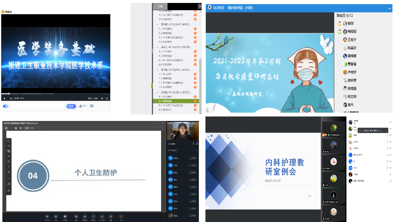在線上教學(xué)過(guò)程中,“雙帶頭人”教師黨支部書記牽頭各教研室,積極探索最優(yōu)教學(xué)模式,集體線上備課,共同研討教學(xué)內(nèi)容和教學(xué)進(jìn)度,研究線上實(shí)習(xí)模式和適用平臺(tái),開展實(shí)習(xí)生線上實(shí)習(xí)準(zhǔn)備工作。護(hù)理學(xué)院兩位“雙帶頭人”支部書記帶頭參與線上教學(xué)督導(dǎo),課后就各課程的教學(xué)情況做出點(diǎn)評(píng),并與任課教師交流經(jīng)驗(yàn)、指導(dǎo)教學(xué)工作,著力提升教學(xué)品質(zhì);因疫情無(wú)法開展線下實(shí)訓(xùn)課,黨員教師們積極引導(dǎo)護(hù)理學(xué)院學(xué)生在宿舍就地取材,利用玩偶、枕頭等進(jìn)行模擬實(shí)訓(xùn),做到理論實(shí)踐相結(jié)合。醫(yī)學(xué)技術(shù)系第二黨支部在支部書記鐘偉雄的帶動(dòng)下,積極推進(jìn)專業(yè)建設(shè),開展智能醫(yī)療裝備技術(shù)專業(yè)和醫(yī)用電子儀器技術(shù)專業(yè)的線上人才培養(yǎng)方案制定會(huì),同時(shí)在學(xué)習(xí)通平臺(tái)開設(shè)《醫(yī)學(xué)裝備基礎(chǔ)》線上課程,錄制教學(xué)實(shí)訓(xùn)視頻,利用虛擬仿真手段開展線上理論授課和實(shí)訓(xùn)教學(xué)。