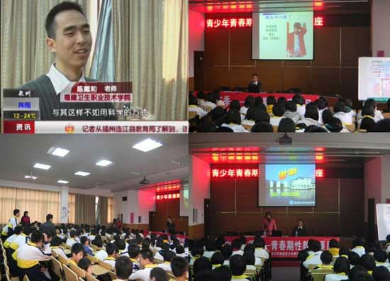 在題為“可愛女人&完美型男”的專題講座中,陳戴和老師以形象生動(dòng)的圖片、科學(xué)直觀的方式,向中學(xué)生宣傳了青春期相關(guān)醫(yī)學(xué)知識(shí),對(duì)青春期常出現(xiàn)的問題(如早戀,自卑心理等等),給予積極正面的引導(dǎo),并與學(xué)生進(jìn)行互動(dòng),效果良好。據(jù)調(diào)查結(jié)果顯示,初中生平時(shí)不易從父母了解到青春期知識(shí),不少學(xué)生第一次如此和老師面對(duì)面談性知識(shí),既興奮,又害羞,聽了講座均反映受益匪淺。講座結(jié)束后,記者采訪部分學(xué)生及陳戴和老師,并于次日(4月8日)晚19:30在福建教育電視臺(tái)“第E時(shí)間”欄目里播出。