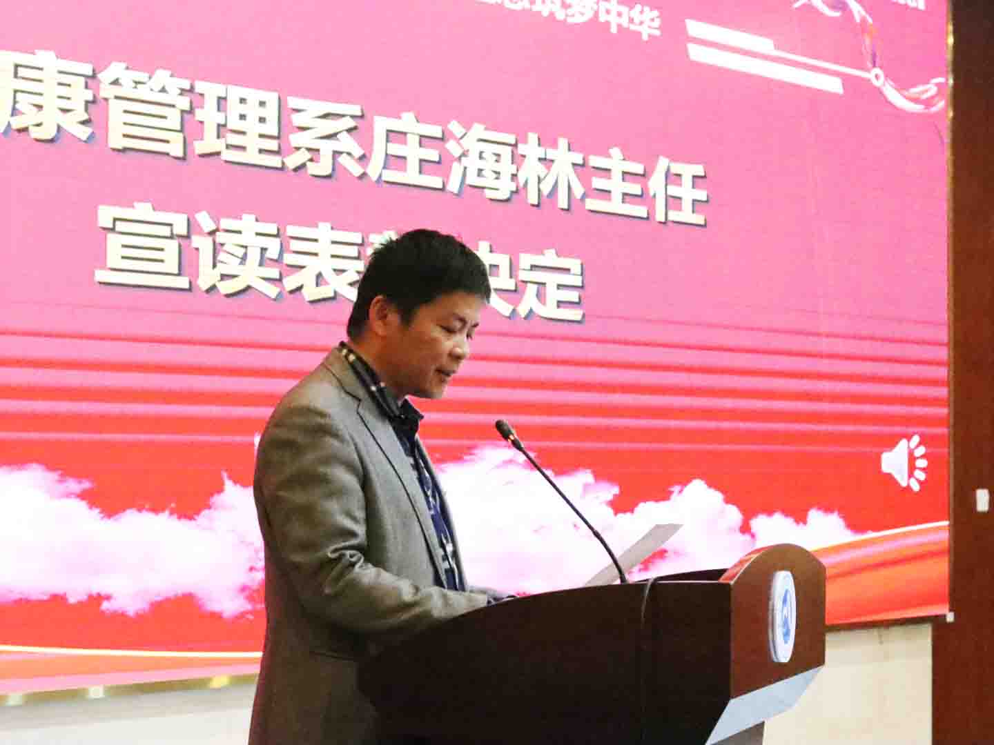 2021年3月25日下午,健康管理系以“建黨百年篳路藍(lán)縷,青年立志筑夢中華”為主題,舉行學(xué)生表彰大會暨2021年“兩項(xiàng)行動”啟動儀式,大會表彰了2019~2020學(xué)年先進(jìn)集體和先進(jìn)個人,啟動了健康管理系2021年迎接建黨100周年“建黨百年”行動和“學(xué)生管理質(zhì)量提升”行動。校領(lǐng)導(dǎo)陳貞健副院長出席活動并講話,學(xué)工部副部長張麗萍、系關(guān)工委鄭向紅主任、王屏副主任、伍麗萍老師,系黨政班子成員及全體教職工和學(xué)生代表400多人參加活動。