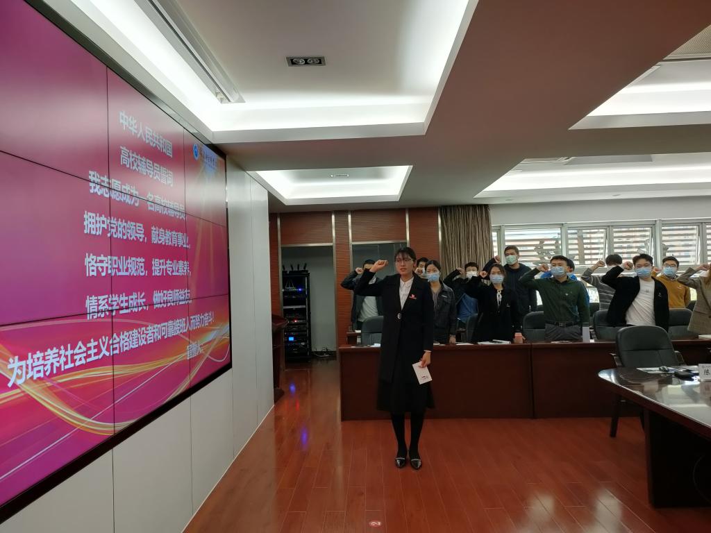 輔導(dǎo)員們平凡而充實的每一天是最堅實的守候。會上,黃銘珊和陳俊穎為院系輔導(dǎo)員代表送上了鮮花與感恩卡,表達了學(xué)校和學(xué)生管理部門對這支隊伍的感謝和關(guān)懷。“我志愿成為一名高校輔導(dǎo)員……為培養(yǎng)社會主義合格建設(shè)者和可靠接班人而努力奮斗!”高校輔導(dǎo)員誓詞在會場響徹,在輔導(dǎo)員尹德愛的領(lǐng)誓下,全體輔導(dǎo)員莊嚴起立,鏗鏘有力的宣誓聲表達了這支隊伍對思政育人事業(yè)的決心和責(zé)任心,在今后的職業(yè)生涯中,他們將初心依舊,砥礪前行。