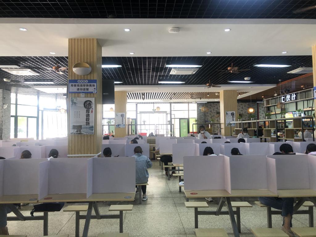 線下復(fù)課,對(duì)于后勤保障也是一場(chǎng)“硬仗”。除日常消殺保潔,劃定一米線,分隔就餐外,學(xué)校三個(gè)食堂的入口處還配備了免洗手消毒液等用品,便于師生進(jìn)入食堂前洗手消毒。在下課后的用餐高峰時(shí)段,師生們?nèi)膛宕骺谡郑g隔一米排隊(duì)取餐,用餐完畢后快速離場(chǎng),就餐環(huán)節(jié)安全、衛(wèi)生、有序。
