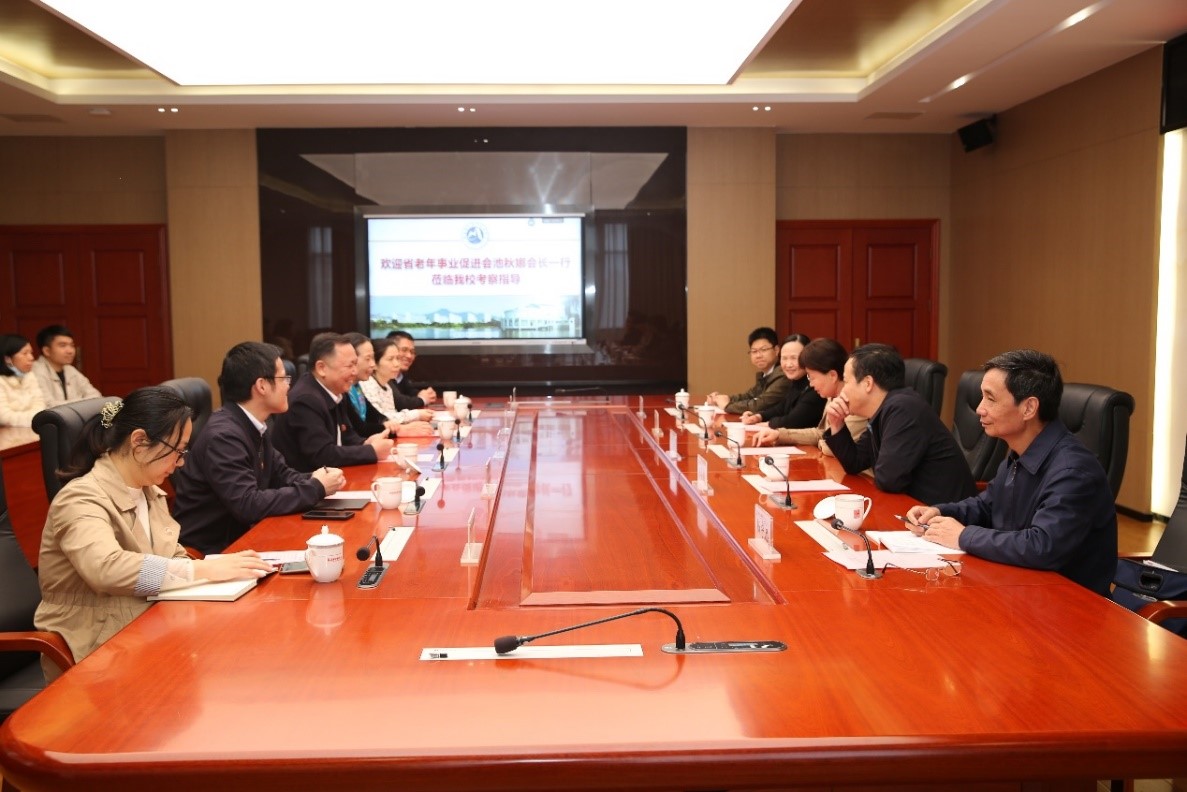 2022年5月16日下午,福建省老年事業(yè)促進(jìn)會(huì)會(huì)長池秋娜、福建省衛(wèi)生健康委員會(huì)一級(jí)巡視員陳厚鑾、福建省老年事業(yè)促進(jìn)會(huì)副會(huì)長何曉清、福建省老年事業(yè)基金會(huì)監(jiān)事長暢守忠等一行5人蒞臨我校調(diào)研。