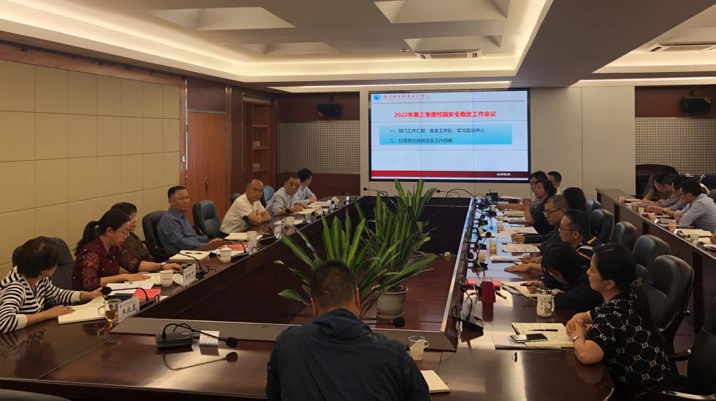 2022年10月19日下午,學(xué)校第三季度安全穩(wěn)定工作會(huì)議在行政樓四樓會(huì)議室召開(kāi)。校領(lǐng)導(dǎo)、中層正職干部(含主持工作)參加會(huì)議,會(huì)議由副校長(zhǎng)黃銘珊主持。