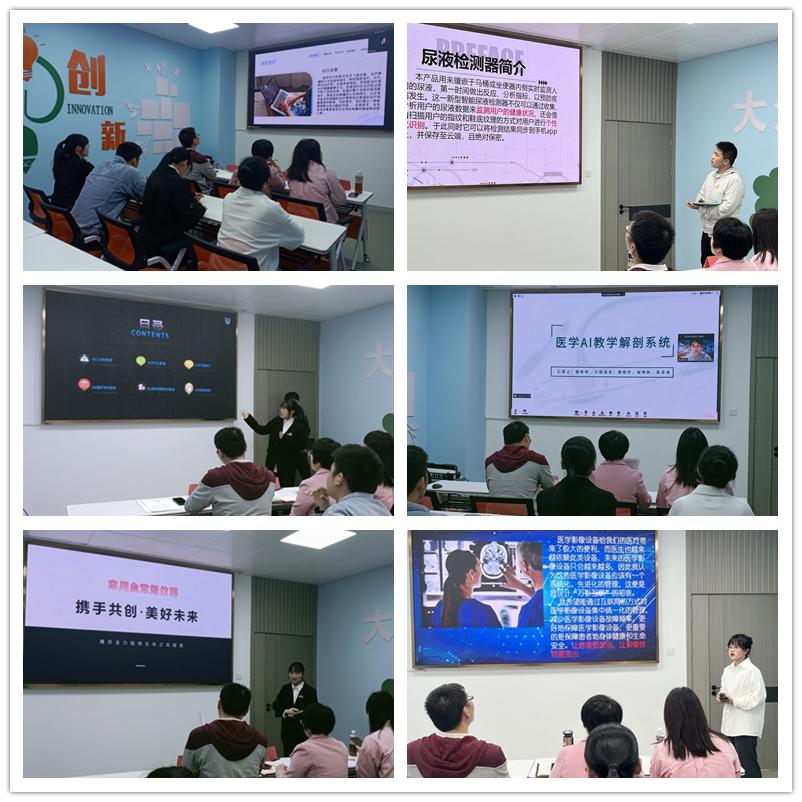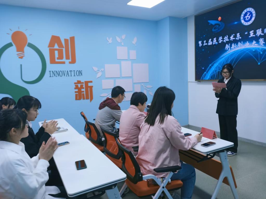 比賽采用線上線下相結(jié)合的方式進(jìn)行,自比賽啟動(dòng)以來(lái),醫(yī)學(xué)技術(shù)系雙帶頭人黨支部采取往屆經(jīng)驗(yàn)介紹、賽事專家輔導(dǎo)等有效措施,充分進(jìn)行賽前動(dòng)員,激發(fā)同學(xué)們創(chuàng)新創(chuàng)業(yè)熱情,共計(jì)收到100多件作品。經(jīng)過(guò)初賽網(wǎng)評(píng)篩選,共有六個(gè)團(tuán)隊(duì)項(xiàng)目脫穎而出進(jìn)入決賽。決賽分為項(xiàng)目展示和現(xiàn)場(chǎng)答辯兩個(gè)環(huán)節(jié),參賽團(tuán)隊(duì)代表通過(guò)PPT展示創(chuàng)業(yè)計(jì)劃目的與想法、創(chuàng)業(yè)實(shí)施過(guò)程中可能遇到的問(wèn)題與解決方案、團(tuán)隊(duì)分工與介紹、市場(chǎng)預(yù)測(cè)等內(nèi)容,詳細(xì)闡述團(tuán)隊(duì)的創(chuàng)新創(chuàng)業(yè)項(xiàng)目。