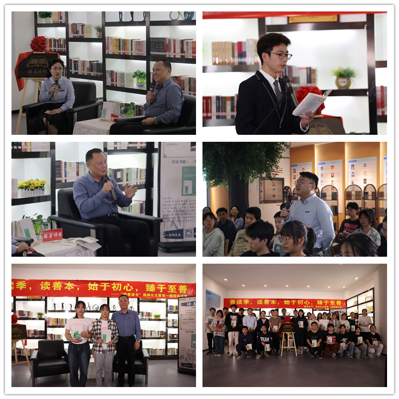 善讀季,讀善本,始于初心,臻于至善。4月23日下午,在第二十八個“世界讀書日”來臨之際,我?!罢樯谱x書”揭牌儀式暨第一期現(xiàn)場活動在校史館順利舉行。本次活動邀請校黨委書記曾武祈作為活動嘉賓,黨委副書記李美華、副校長黃銘珊出席活動,宣傳部、學(xué)生工作部、團委、圖書館負責(zé)人,各二級院系團總支書記、2022年度閱讀達人和校讀者協(xié)會學(xué)生代表參加現(xiàn)場活動。此次活動由圖書館劉穎老師主持。