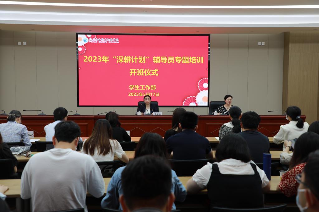 以學(xué)聚力,深耕易耨育杏林。5月17日上午,學(xué)校在行政樓六樓會(huì)議室舉辦2023年“深耕計(jì)劃”輔導(dǎo)員專題培訓(xùn)開班儀式。副校長(zhǎng)黃銘珊,學(xué)生工作部全體成員,各院系黨總支相關(guān)負(fù)責(zé)人,68名專兼職輔導(dǎo)員參加本次開班儀式。開班儀式由學(xué)生工作部部長(zhǎng)陳俊穎主持。