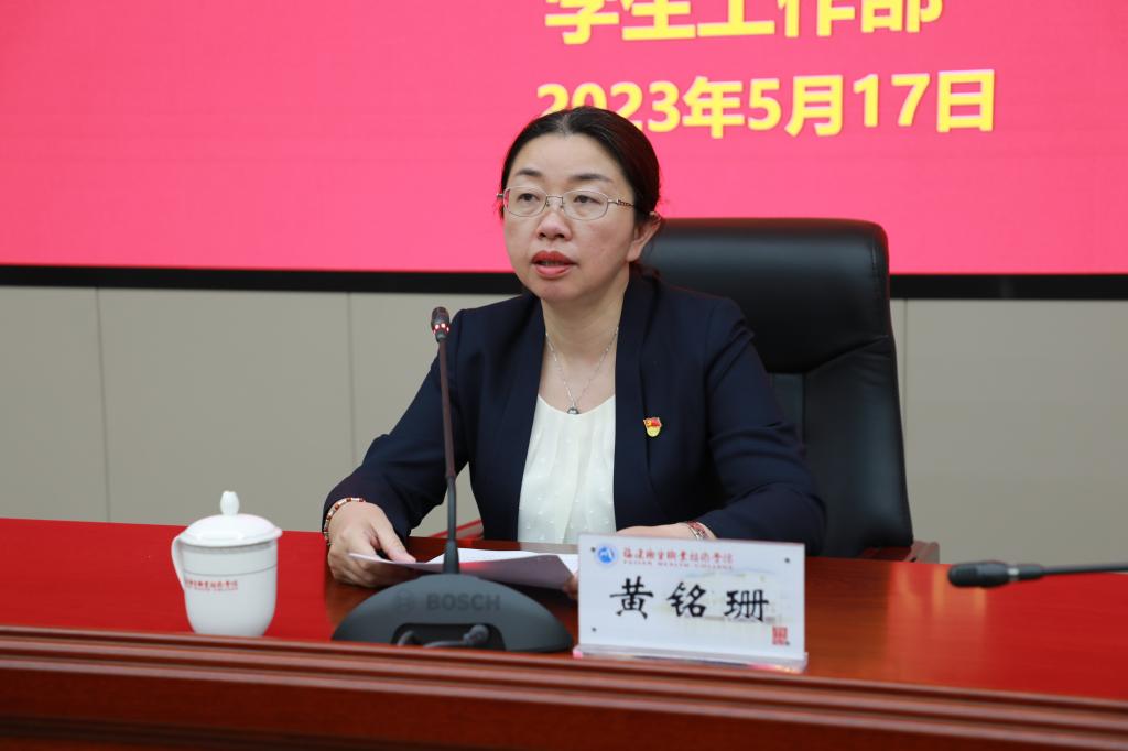 黃銘珊作開班動(dòng)員講話,她強(qiáng)調(diào),高校思想政治工作是學(xué)校各項(xiàng)工作的“生命線”,高校輔導(dǎo)員是培養(yǎng)德智體美勞全面發(fā)展的社會(huì)主義建設(shè)者和接班人的重要力量。黃銘珊對(duì)本年度的培訓(xùn)提出三點(diǎn)希望和要求,一是深刻領(lǐng)會(huì)培訓(xùn)班的意義,深入學(xué)習(xí)以提升政治能力,把握政治方向,充分認(rèn)識(shí)到輔導(dǎo)員在落實(shí)立德樹人根本任務(wù)、推動(dòng)高等教育健康發(fā)展中的重要意義、重大責(zé)任和光榮使命;二是提升育人素養(yǎng),練就過硬本領(lǐng)。通過系統(tǒng)全面的學(xué)習(xí)提升專業(yè)化能力,把學(xué)習(xí)課堂搬到一線工作中,做到“心中有數(shù)、眼里有情、腦中有法”,在學(xué)生管理工作中不斷汲取智慧和營(yíng)養(yǎng),在服務(wù)學(xué)生群體中不斷提升解決問題的實(shí)戰(zhàn)能力;三是靜心潛心學(xué)習(xí),把本年度的培訓(xùn)作為輔導(dǎo)員隊(duì)伍提升育人能力、激發(fā)工作熱情和增強(qiáng)信心的“加油站”,努力做到學(xué)習(xí)上有進(jìn)步、思想上有提高、工作上有促進(jìn),以銳意進(jìn)取的工作狀態(tài)、開拓創(chuàng)新的精神風(fēng)貌,為全面提升學(xué)生素質(zhì)、促進(jìn)學(xué)生全面發(fā)展做出更大貢獻(xiàn)。