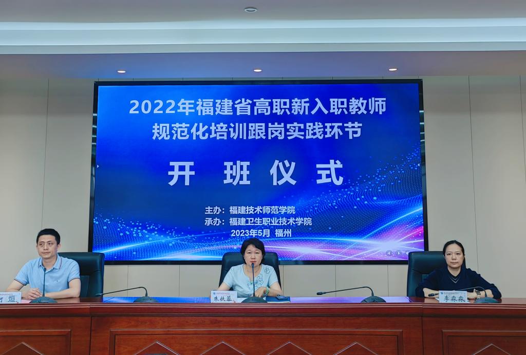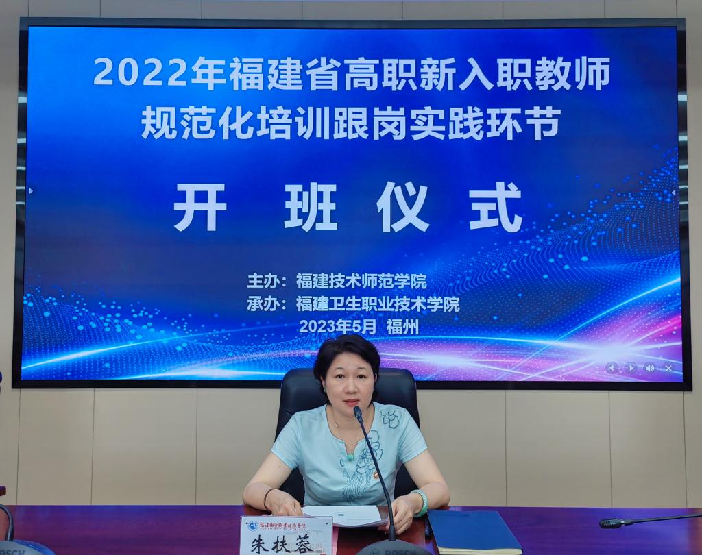 為做好我省2022年度職業(yè)院校教師素質(zhì)提高計劃中高職新入職教師規(guī)范化培訓,受福建技術師范學院委托,由我校承辦的高職新入職教師規(guī)范化培訓跟崗實踐環(huán)節(jié)(醫(yī)藥衛(wèi)生類)開班儀式于5月22日在行政樓六樓會議室召開。副校長朱扶蓉,教務處以及各學院(系、部)相關負責人,跟崗實踐導師和14名新入職教師參加開班儀式。開班儀式由繼續(xù)教育學院副院長何烜主持。