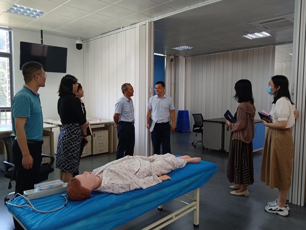教務(wù)處負(fù)責(zé)人李淼淼提出,一要落實(shí)落細(xì)目前教學(xué)存在的問(wèn)題,希望兩校通過(guò)交流協(xié)商,做好轉(zhuǎn)段考試工作;二要通過(guò)師資支援、集體備課、專(zhuān)業(yè)指導(dǎo)等方面的學(xué)習(xí)與磨合,不斷找準(zhǔn)契合高本貫通臨床醫(yī)學(xué)專(zhuān)業(yè)學(xué)生的教學(xué)模式,切實(shí)提高教學(xué)水平與效果。劉豫瑞表示,一方面,要提升教學(xué)管理質(zhì)量,優(yōu)化人才培養(yǎng)方案,保障轉(zhuǎn)段考試工作,優(yōu)選實(shí)習(xí)實(shí)訓(xùn)資源,鼓勵(lì)學(xué)生參與技能競(jìng)賽,安排教師參與集體備課,協(xié)助培訓(xùn)技能考核標(biāo)準(zhǔn)化病人(SP);另一方面,要聯(lián)合加強(qiáng)學(xué)生管理水平,重點(diǎn)在學(xué)生學(xué)習(xí)目標(biāo)、人生規(guī)劃、心理壓力等方面下功夫,加強(qiáng)兩校學(xué)生間的互動(dòng)交流,進(jìn)一步增強(qiáng)學(xué)生的歸屬感。劉豫瑞一行還實(shí)地考察了臨床醫(yī)學(xué)專(zhuān)業(yè)實(shí)訓(xùn)基地,重點(diǎn)了解轉(zhuǎn)段考試課程《診斷學(xué)》技能考核實(shí)訓(xùn)條件。