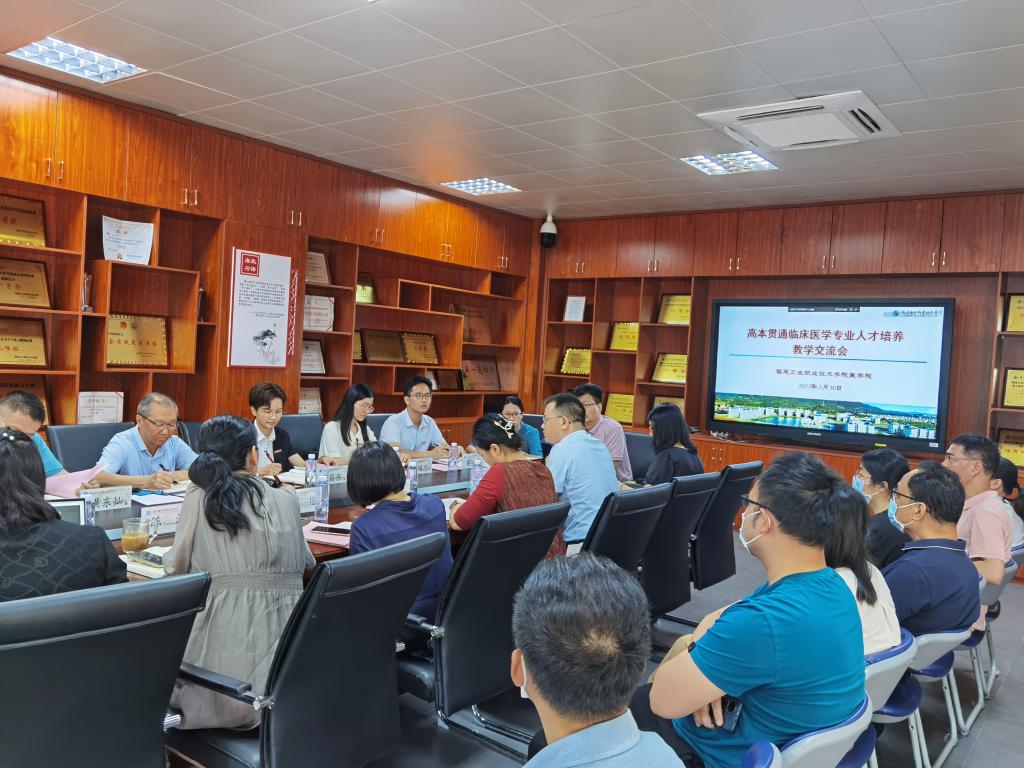 為推動(dòng)主題教育走深走實(shí),進(jìn)一步加強(qiáng)人才培養(yǎng)、專(zhuān)業(yè)建設(shè)、師資培育等方面的交流合作,2023年5月30日,福建醫(yī)科大學(xué)健康學(xué)院院長(zhǎng)劉豫瑞一行6人來(lái)校召開(kāi)高本貫通臨床醫(yī)學(xué)專(zhuān)業(yè)人才培養(yǎng)教學(xué)交流會(huì)。教務(wù)處、實(shí)習(xí)實(shí)訓(xùn)中心負(fù)責(zé)人,醫(yī)學(xué)院、醫(yī)學(xué)技術(shù)系相關(guān)領(lǐng)導(dǎo),臨床醫(yī)學(xué)專(zhuān)業(yè)負(fù)責(zé)人、相關(guān)教研室主任、專(zhuān)業(yè)教師代表以及學(xué)生輔導(dǎo)員參加交流會(huì)。會(huì)議由醫(yī)學(xué)院副院長(zhǎng)鄧元榮主持。