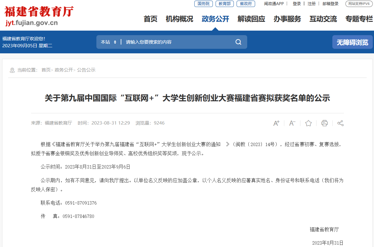 第九屆福建省“互聯(lián)網(wǎng)+”大學(xué)生創(chuàng)新創(chuàng)業(yè)大賽由福建省教育廳、福建省委統(tǒng)戰(zhàn)部、福建省委網(wǎng)信辦、福建省發(fā)改委、福建省工信廳、福建省人社廳、福建省農(nóng)業(yè)農(nóng)村廳、福建省市場監(jiān)管局(福建省知識產(chǎn)權(quán)局)、共青團(tuán)福建省委、福建省科協(xié)、福建省中華職教社等部門共同主辦,福州大學(xué)、黎明職業(yè)大學(xué)分別承辦,福建教育電視臺、福建省創(chuàng)新創(chuàng)業(yè)創(chuàng)造教育指導(dǎo)委員會等單位參與協(xié)辦。據(jù)悉,本屆大賽共吸引全省247所學(xué)校的85萬名師生,近22.3萬個項目報名參賽,參賽人數(shù)、項目數(shù)均創(chuàng)歷史新高。