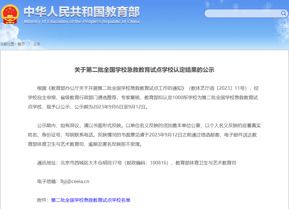 近日,教育部公示第二批全國學校急救教育試點學校認定結(jié)果,我校名列其中。