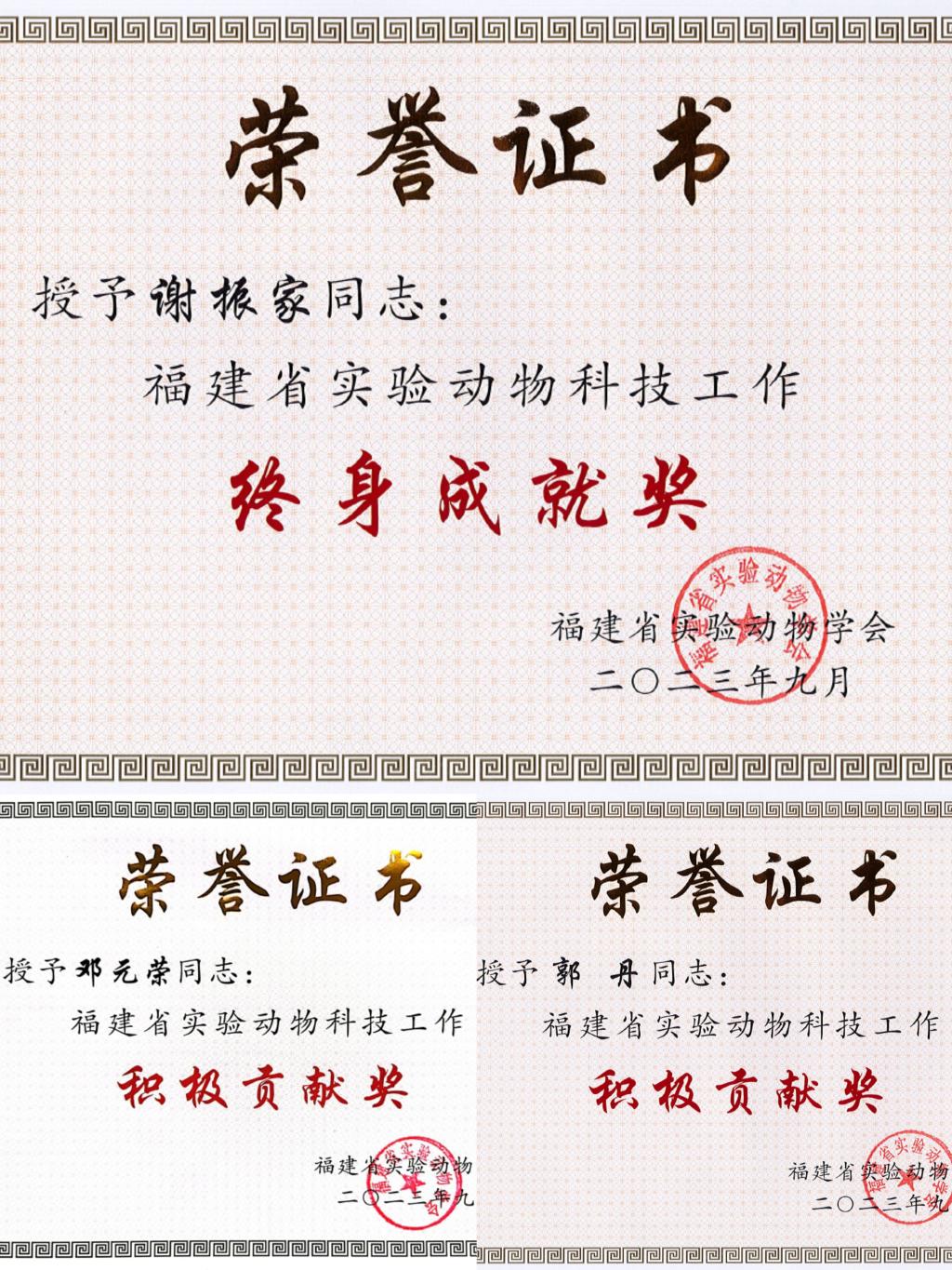 會上,我校退休教師謝振家榮獲福建省實驗動物學會“終身成就獎”,鄧元榮、郭丹獲評“積極貢獻獎”。獎勵設(shè)置是為弘揚科學家精神,激勵實驗動物科技工作者,以表彰對福建省實驗動物科學建設(shè)與發(fā)展作出突出貢獻的科技工作者,銘記功績、激勵后人。