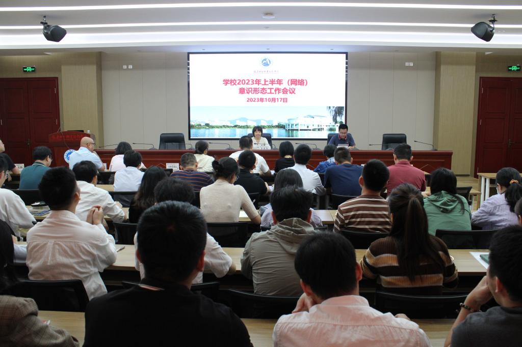 10月17日上午,我校2023年上半年(網(wǎng)絡(luò))意識(shí)形態(tài)工作會(huì)議在行政樓六樓會(huì)議室召開(kāi)。校黨委副書(shū)記李美華,學(xué)校網(wǎng)絡(luò)安全和信息化領(lǐng)導(dǎo)小組辦公室各成員、各學(xué)生院系黨總支負(fù)責(zé)人、全體專兼職輔導(dǎo)員、宣傳部工作人員參加會(huì)議。會(huì)議由宣傳部部長(zhǎng)宋維主持。