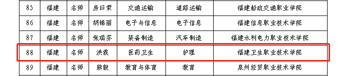 本次新時代職業(yè)學校名師培養(yǎng)對象名單,福建省僅6人入選,我校也是入選的唯一一所醫(yī)藥衛(wèi)生類院校。