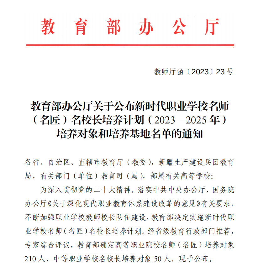 近日,教育部辦公廳下發(fā)《關于公布新時代職業(yè)學校名師(名匠)名校長培養(yǎng)計劃(2023-2025年)培養(yǎng)對象和培養(yǎng)基地名單的通知》,我校護理學院洪霞老師入選名師培養(yǎng)對象。