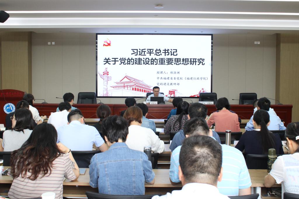 會議邀請了福建省委黨校鄭濟洲副教授作專題報告。他以《習近平總書記關于黨的建設的重要思想研究》為題,結合近現代史、黨史,圍繞“習近平新時代黨建思想的重要意義”“主要內容”“實踐原則”三個部分系統(tǒng)闡釋了習近平總書記關于黨的建設的重要思想的形成、發(fā)展和應用。整場報告主題鮮明、內容豐富、邏輯清晰,對我校黨務干部理解和把握習近平總書記關于黨的建設的重要思想具有很強的理論指導作用。