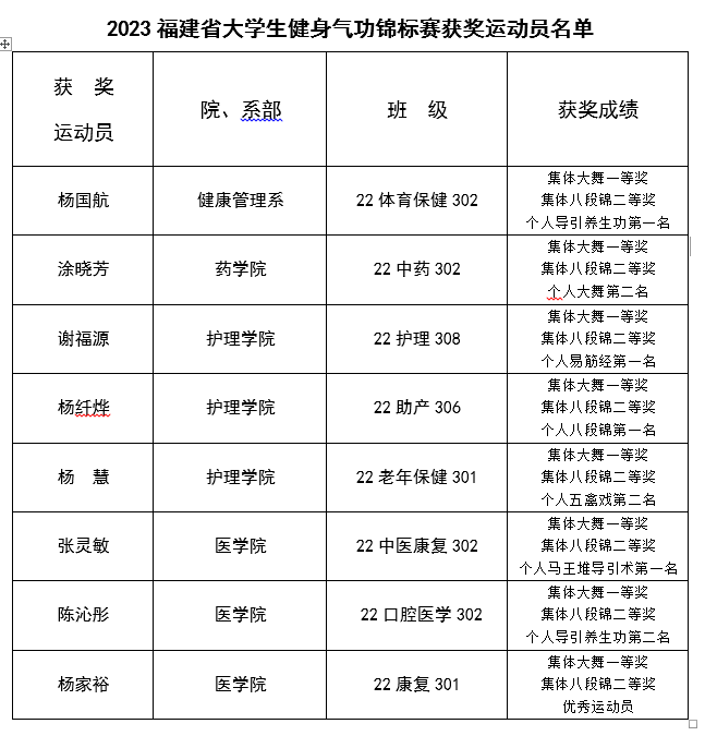 2023年10月20日至23日,由福建省大學(xué)生體育協(xié)會(huì)、南平市體育局、松溪縣人民政府主辦,福建省大學(xué)生體育協(xié)會(huì)健身氣功分會(huì)、松溪縣文化體育和旅游局、松溪縣茶業(yè)發(fā)展中心承辦,松溪縣健身氣功協(xié)會(huì)協(xié)辦的2023 年福建省大學(xué)生健身氣功錦標(biāo)賽在福建省松溪縣舉辦。