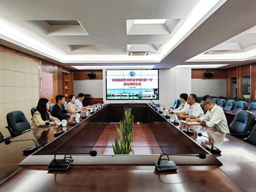 11月1日下午,福建藝術(shù)職業(yè)學(xué)院黨委委員、紀(jì)委書(shū)記湯國(guó)榮等一行4人來(lái)校調(diào)研交流。紀(jì)委書(shū)記游鋒在行政樓四樓會(huì)議室會(huì)見(jiàn)湯國(guó)榮一行并舉行座談,紀(jì)委辦公室工作人員參加座談。