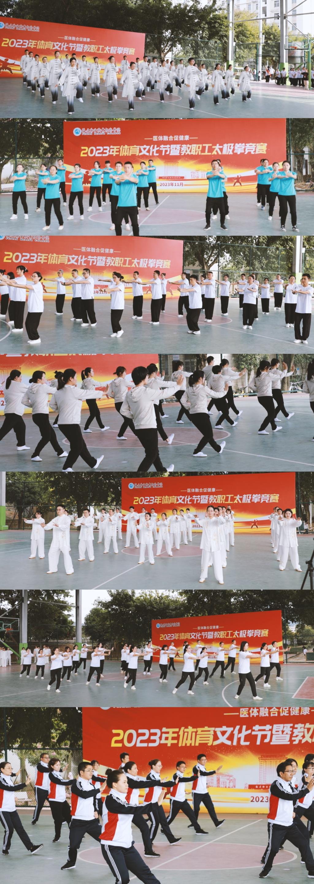 11月9日,2023年體育文化節(jié)的系列活動(dòng)之一,教職工太極拳比賽在學(xué)?;@球場(chǎng)舉行。本次比賽由校工會(huì)和體育部主辦,全體校領(lǐng)導(dǎo)、體育運(yùn)動(dòng)委員會(huì)委員全程觀摩比賽,由13個(gè)工會(huì)小組組成的7支隊(duì)伍共189名教職工參加比賽。