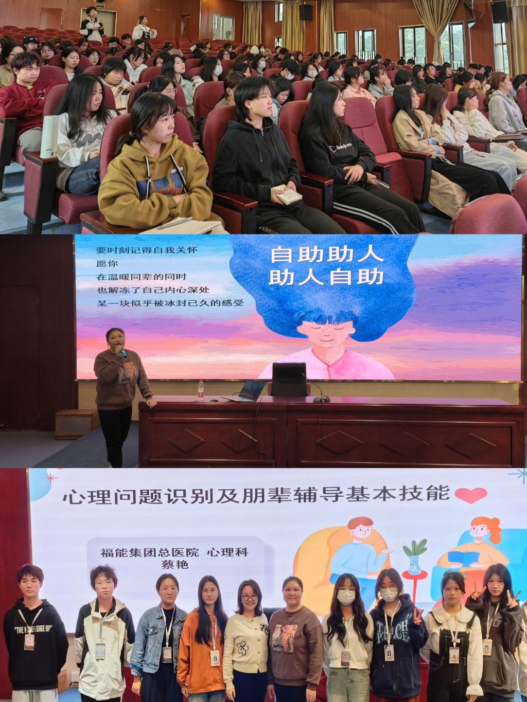 為促進(jìn)我校心理健康教育工作的開展,提升心理朋輩輔導(dǎo)技巧和操作實(shí)踐能力。11月13日,我校邀請(qǐng)福建省福能集團(tuán)總醫(yī)院心理科主任蔡艷為我校心理朋輩開展“心理問題識(shí)別及朋輩輔導(dǎo)基本技能”主題講座。蔡艷從常見心理問題、心理問題識(shí)別和朋輩輔導(dǎo)技巧三大方面為同學(xué)們講述了許多有實(shí)效價(jià)值的心理疏導(dǎo)原則和技巧,并通過現(xiàn)場互動(dòng)問答,進(jìn)一步提高心理朋輩處理心理問題的能力。