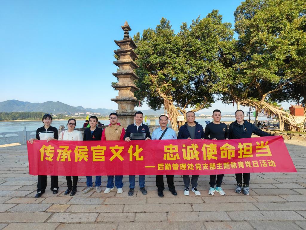 為進(jìn)一步鞏固拓展學(xué)習(xí)貫徹習(xí)近平新時(shí)代中國特色社會(huì)主義思想主題教育成果,引導(dǎo)廣大黨員從思想上正本清源、固本培元,不斷提高政治判斷力、政治領(lǐng)悟力、政治執(zhí)行力,2023年11月23日,院直機(jī)關(guān)黨總支后勤管理處黨支部組織黨員干部前往上街鎮(zhèn)侯官村,開展“傳承侯官文化,忠誠使命擔(dān)當(dāng)”主題黨日活動(dòng)。學(xué)校紀(jì)委書記游鋒全程參加了本次主題黨日活動(dòng)。