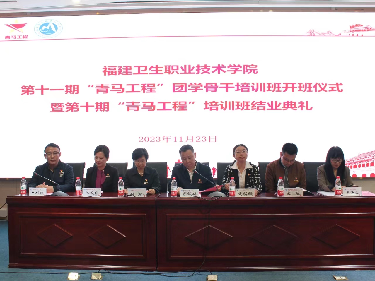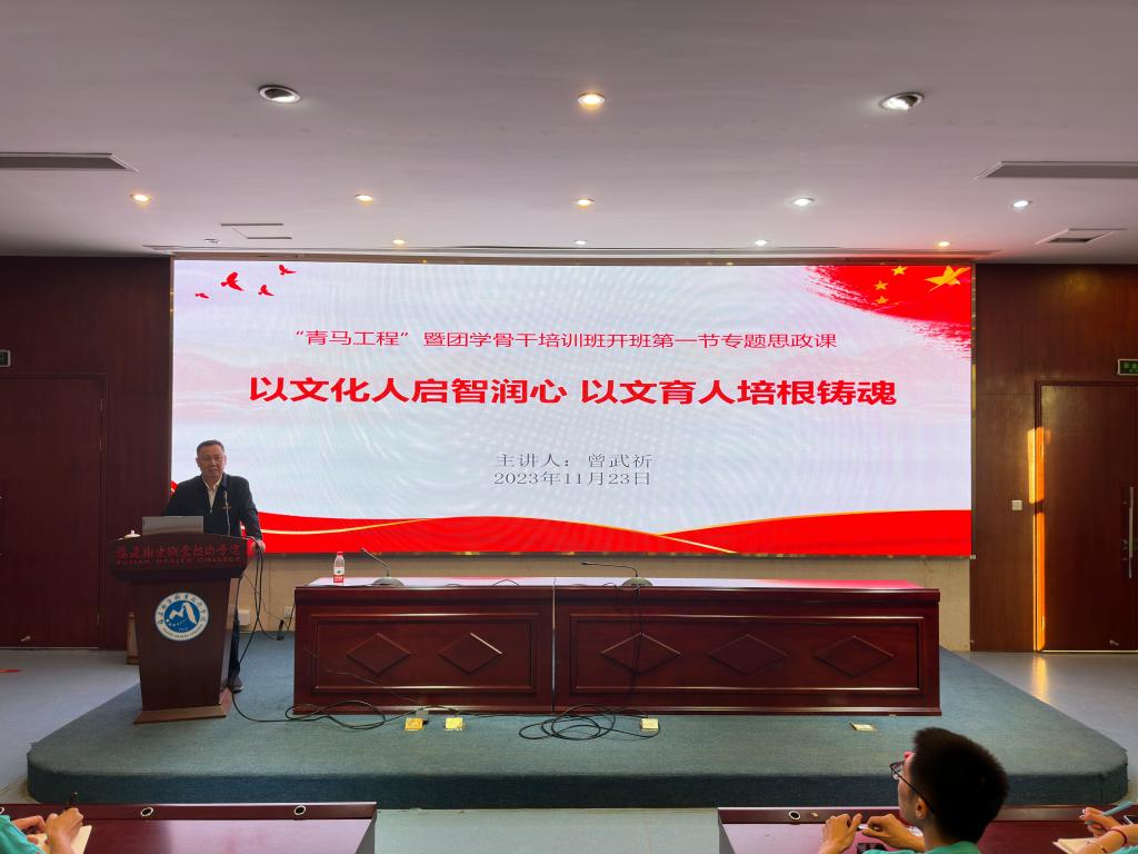 2023年11月23日下午,我校第十一期“青馬工程”團學(xué)骨干培訓(xùn)班開班儀式暨第十期“青馬工程”團學(xué)骨干培訓(xùn)班結(jié)業(yè)典禮在實訓(xùn)樓四樓報告廳順利舉行。校黨委書記曾武祈、副校長黃銘珊出席儀式,組織統(tǒng)戰(zhàn)部、宣傳部、學(xué)生工作部、馬克思主義學(xué)院、團委、各院系黨團組織負責(zé)人以及115名第十一期“青馬工程”學(xué)員參加儀式。儀式結(jié)束,曾武祈為青馬學(xué)員講授開班第一節(jié)專題思政課。