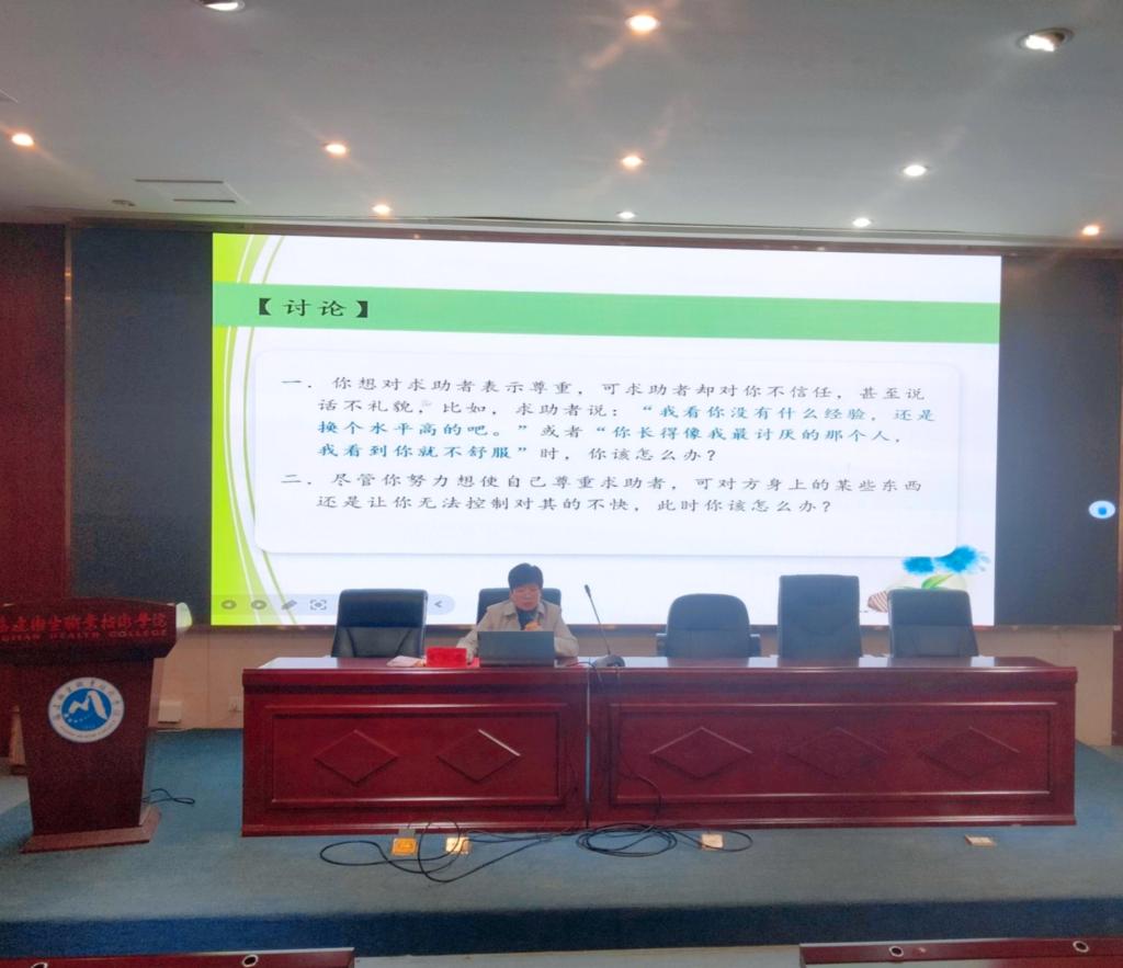 田偉翠老師為同學(xué)們詳細介紹了心理委員的工作職責(zé)和重要性,講解了如何有效開展心理委員工作,讓大家更加清晰地明確了自身職責(zé),為今后朋輩輔導(dǎo)的工作指明方向。