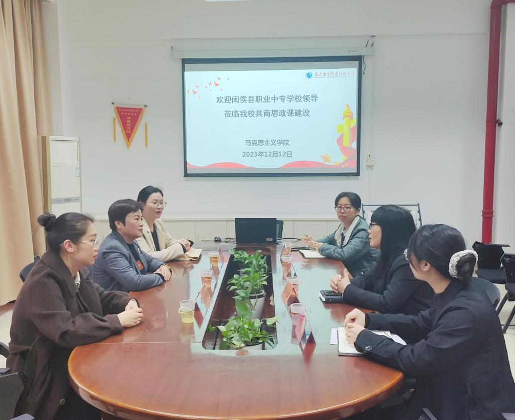 為深入貫徹習(xí)近平總書記關(guān)于思政課建設(shè)的重要論述和“大思政課”的重要指示,2023年12月12日,閩侯縣職業(yè)中專學(xué)校副校長林曉彬、職教處主任蔡珊、德育組組長吳秀倩一行3人蒞臨我校馬克思主義學(xué)院共商“大中小學(xué)思政課一體化建設(shè)”事宜。馬克思主義學(xué)院院長熊美蘭、副書記賴文金熱情接待,并在行政樓107會議室開展交流座談。