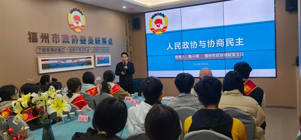 接著,市政協(xié)常委、市政協(xié)調(diào)研室主任陳小剛作《人民政協(xié)與協(xié)商民主》專題講座,深入解讀人民政協(xié)的性質(zhì)、地位、作用及福州市政協(xié)協(xié)商民主實(shí)踐,幫助師生志愿者們更好地理解國(guó)家的政治體系和發(fā)展方向。