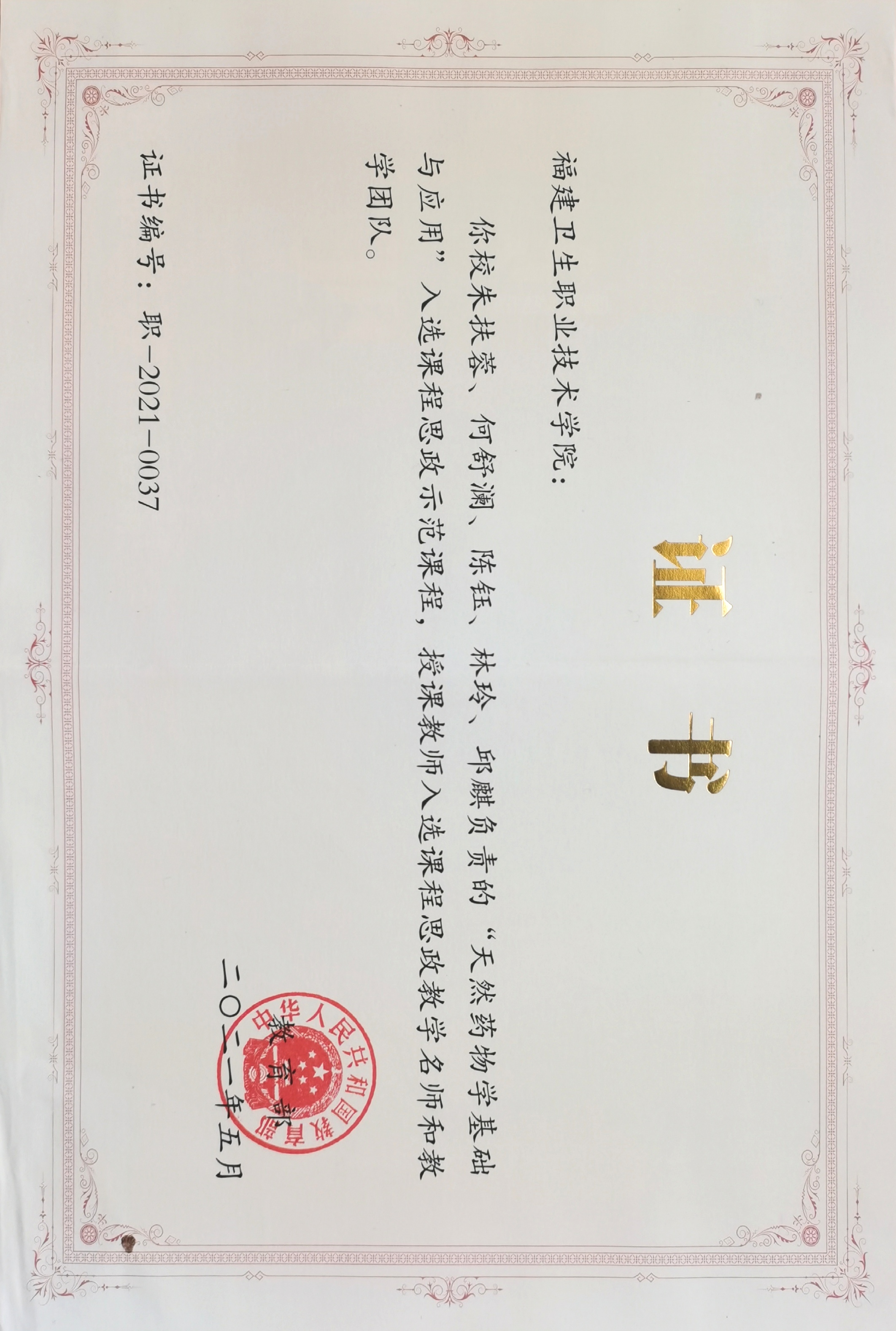 全省高校“雙帶頭人”教師黨支部書(shū)記工作室——藥學(xué)院第一黨支部書(shū)記工作室打造的“天然藥物學(xué)基礎(chǔ)與應(yīng)用”課程入選教育部課程思政示范課程