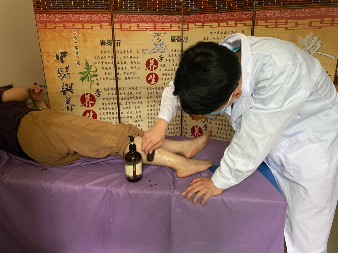 圖為幫助村民刮痧,起到活血化淤,補中益氣的作用。中國青年網(wǎng)通訊員 趙夢雅 攝