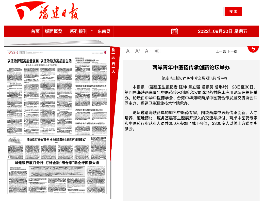 福建衛(wèi)生健康新聞網(wǎng) 2022年9月30日 鏈接:http://fjwsjk.fjsen.com/2022-09/30/content_31144668.htm