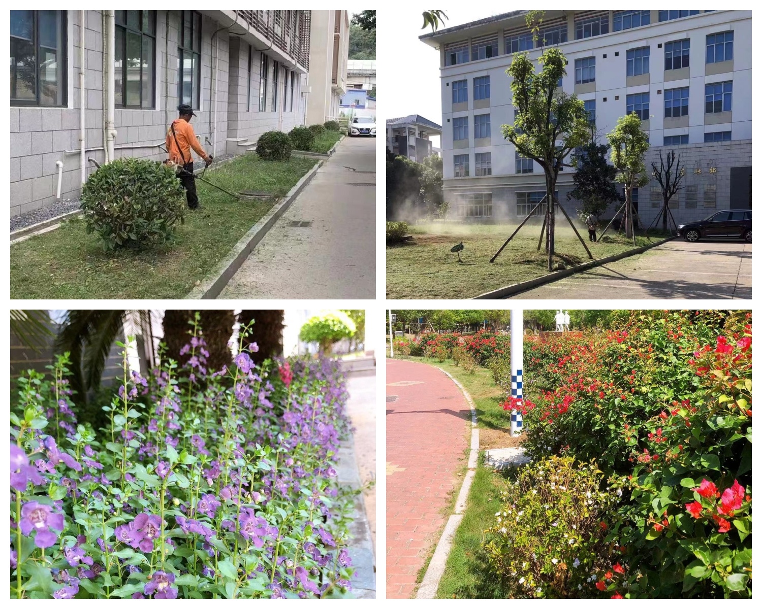 為提升校園整體環(huán)境,營造濃厚的節(jié)日氛圍,學(xué)校全力做好修剪、除草、灌溉等綠植養(yǎng)護(hù)工作,為節(jié)日增綠添彩。