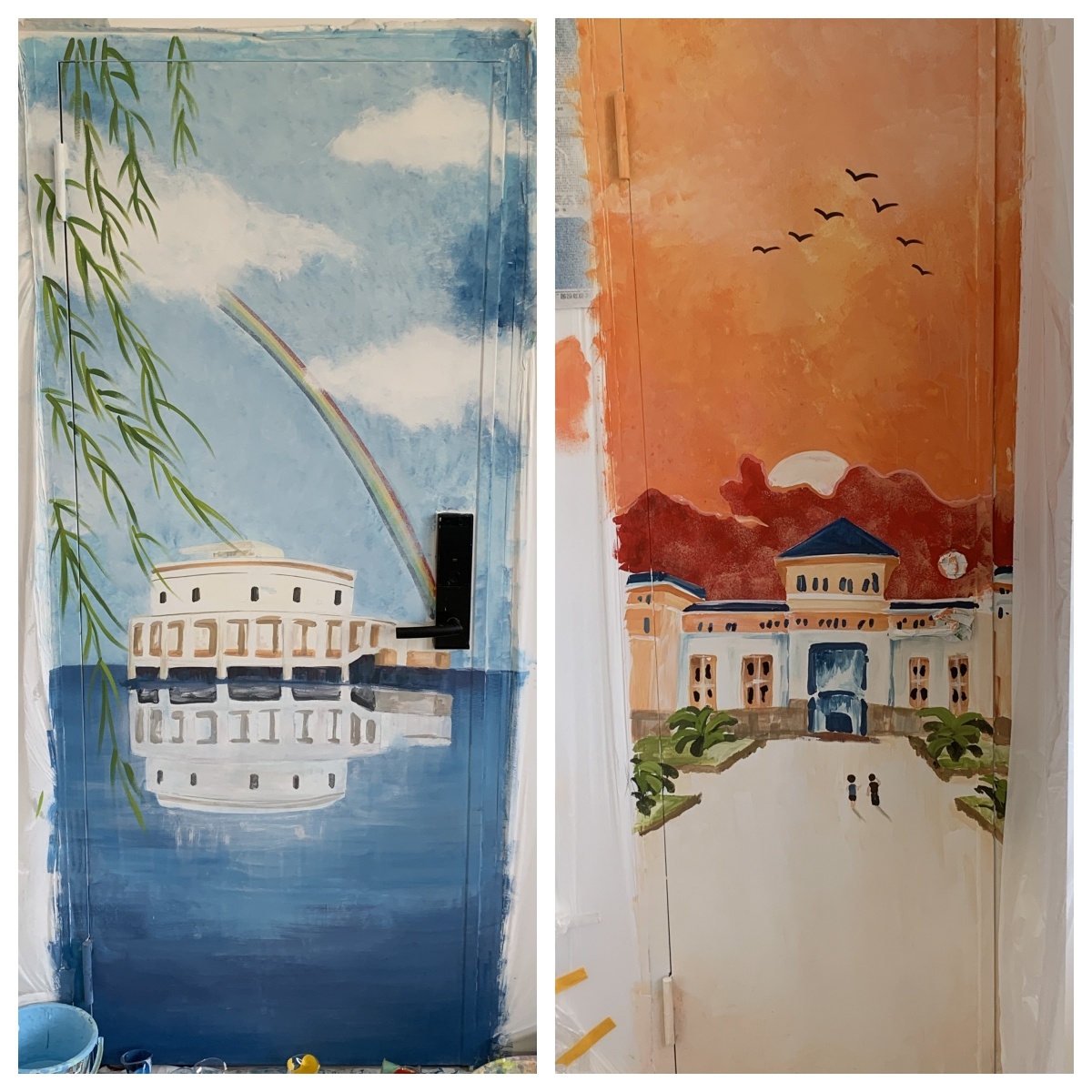 行政樓,五顏六色的手繪讓普通的電工房“活”了起來。教學(xué)樓、圖書館、明湖等學(xué)校標(biāo)志性建筑躍然于墻面,每一處都訴說著對學(xué)校的濃濃深情。