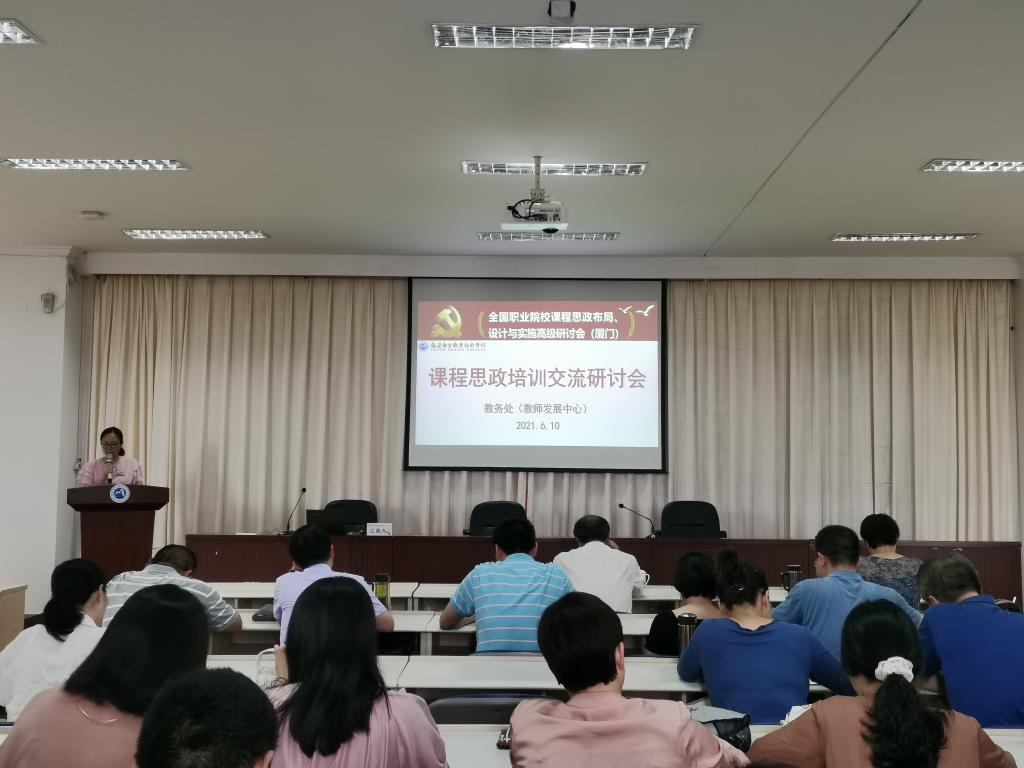為深入貫徹落實(shí)教育部印發(fā)的《高等學(xué)校課程思政建設(shè)指導(dǎo)綱要》和《職業(yè)教育提質(zhì)培優(yōu)行動(dòng)計(jì)劃(2020-2023年)》文件精神,全面推進(jìn)我校課程思政建設(shè),創(chuàng)新思想政治教育模式,2021年6月10日下午,教務(wù)處教師發(fā)展中心舉辦了課程思政培訓(xùn)交流研討會(huì)。