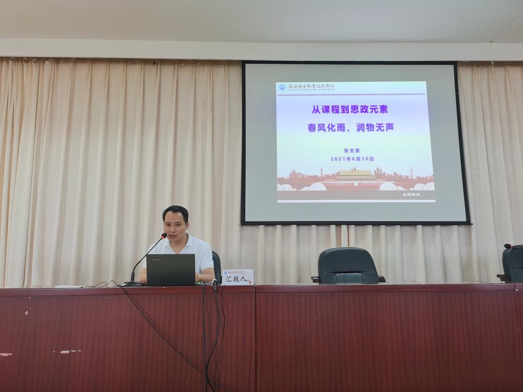 研討會(huì)分為兩個(gè)議程,首先由醫(yī)學(xué)系外科教研室主任劉景城老師和醫(yī)學(xué)技術(shù)系眼視光教研室主任張文賢老師分別作題為“從課程到思政——三線融合 理實(shí)一體 六步嬗變”和“從課程到思政元素——春風(fēng)化雨、潤物無聲”的培訓(xùn)心得分享。劉景城、張文賢兩位老師分別從不同視角介紹了在“全國職業(yè)院校課程思政布局、設(shè)計(jì)與實(shí)施高級研討會(huì)”中,培訓(xùn)專家對課程思政建設(shè)的指導(dǎo),更是結(jié)合了自身所教的專業(yè)和課程,介紹了其所在教學(xué)團(tuán)隊(duì)對《傳染病學(xué)》和《眼視光技術(shù)》課程的思政元素梳理,思政教育方法融入課堂教學(xué)的思考。