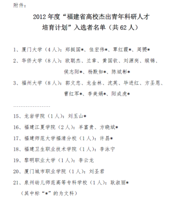1.2012年入選“福建省高等學(xué)校杰出青年科研人才培育計(jì)劃”